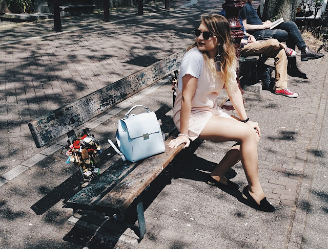 The magic of combination is the key to not only travel lightly but also still look good during your days abroad. Basic tshirts, jeans, cardigans and a leather jacket are life savers to take on city trips. Basic white and black tshirts can easily be worn up and down and can be combined with either leather jacket or a cardigan, which means by taking two tshirts you already have four outfits to choose from. Light jackets don’t take up much weight or space and can be used to layer underneath the leather jacket whenever the wind, which was omnipresent in Amsterdam, gets unbearable. My carry-on contained a pair of jeans, a skirt, two tshirts and a bomber and a pair of loafers for a warm day. The rest I had with me I was wearing and I was perfectly fine. The trick is to really plan your outfits and take things which look good with multiple items in your wardrobe.