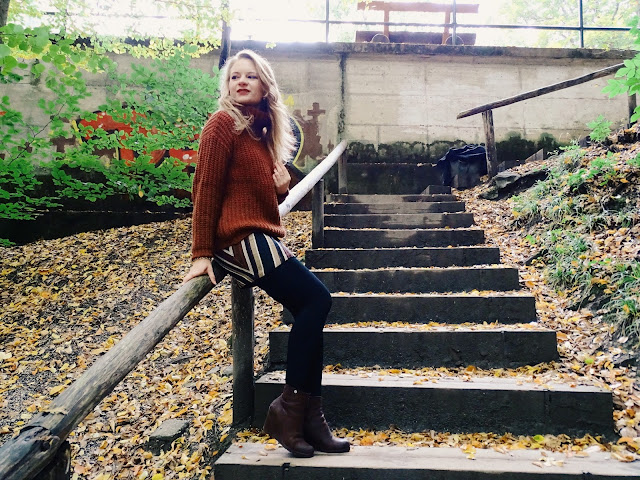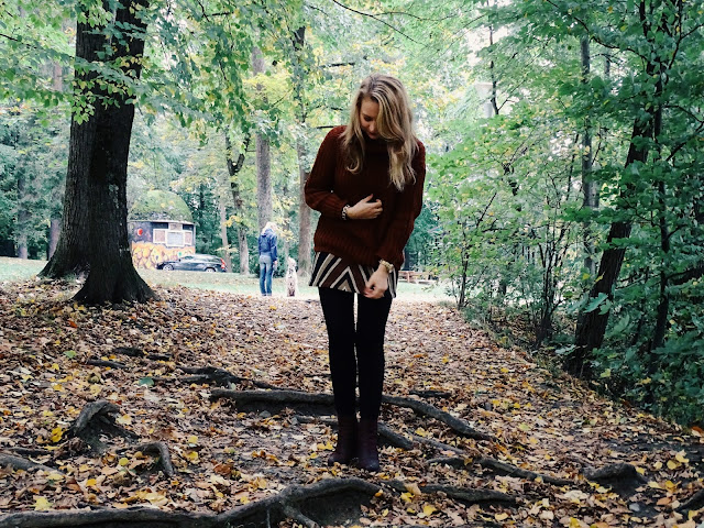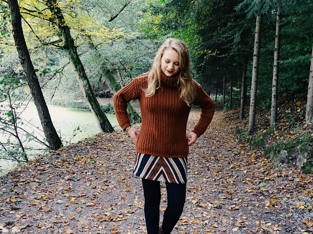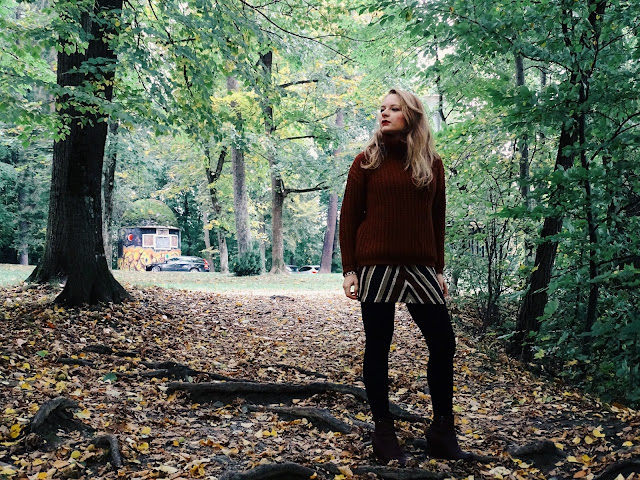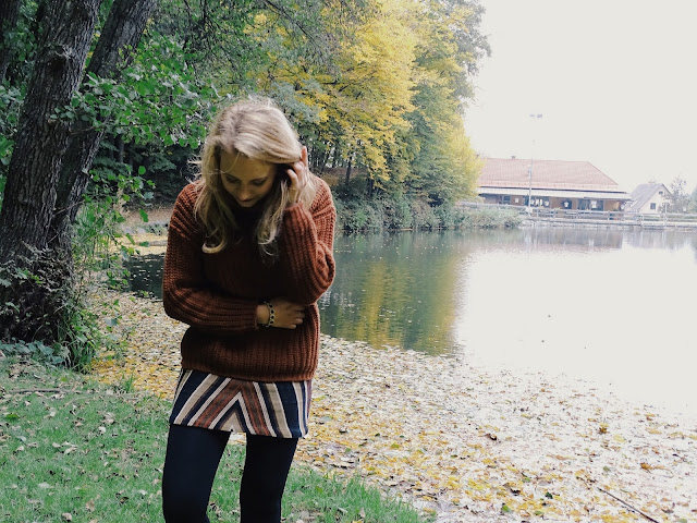 Autumn is undoubtedly my favourite time of the year as you can start wearing cozy sweaters and enjoy the advantages of layering again. Moreover, I have always had a slight obsession for the atmosphere that is created by the leaves changing colours and turning world’s forests into a picturesque image of nature set on fire. Autumn is a season full of change and preparation for the time of nature’s hibernation and I have found myself opting for outfits in autumn colours a majority of the time during this particular season. Earth tones radiate a high amount of peacefulness and make me personally feel more grounded and settled, which results in me feeling more confident with myself. Those colours are easy to combine as there are loads of shades that not only nature but also fashion provides so it’s basically suitable for every kind of skin tone and hair colour. Especially sweaters in natural colours made of a soft, comfortable fabric like gentle wool or silk, the choice depends on temperature and preference only, are perfect to be combined with more extraordinary patterns to create an individual outfit that makes you stand out.