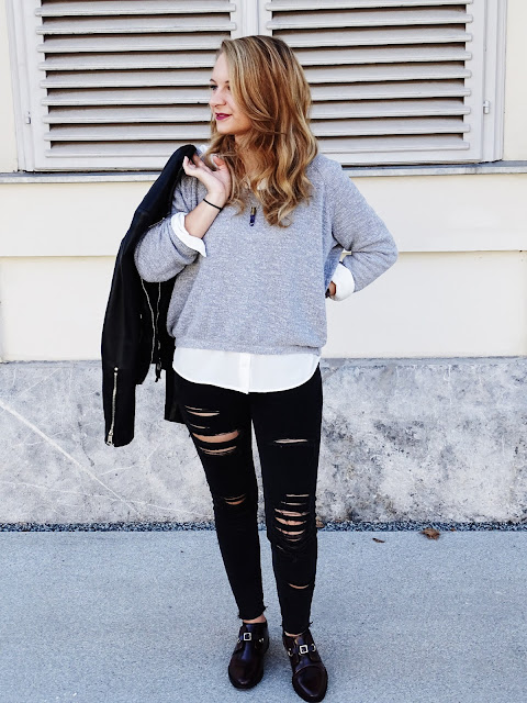 Shirt: Mango; Sweater: Zara; Jeans: Mango; Jacket: Zara; Shoes: Topshop