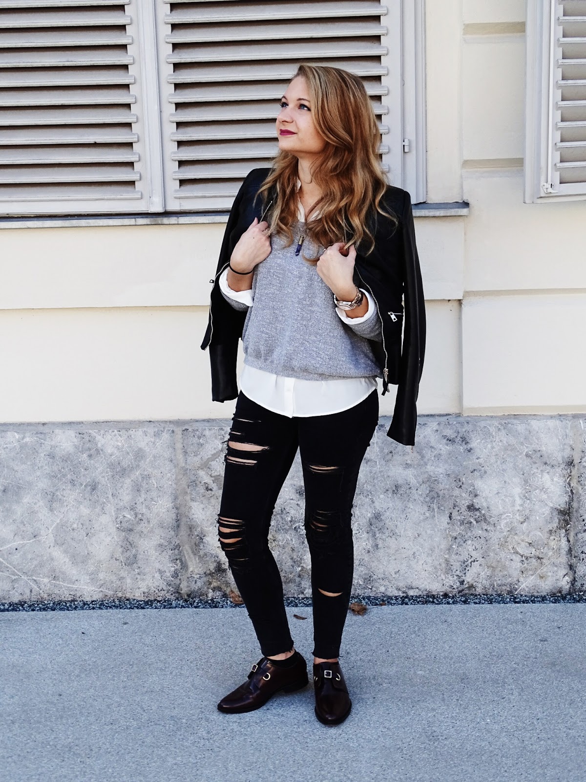 Shirt: Mango; Sweater: Zara; Jeans: Mango; Jacket: Zara; Shoes: Topshop