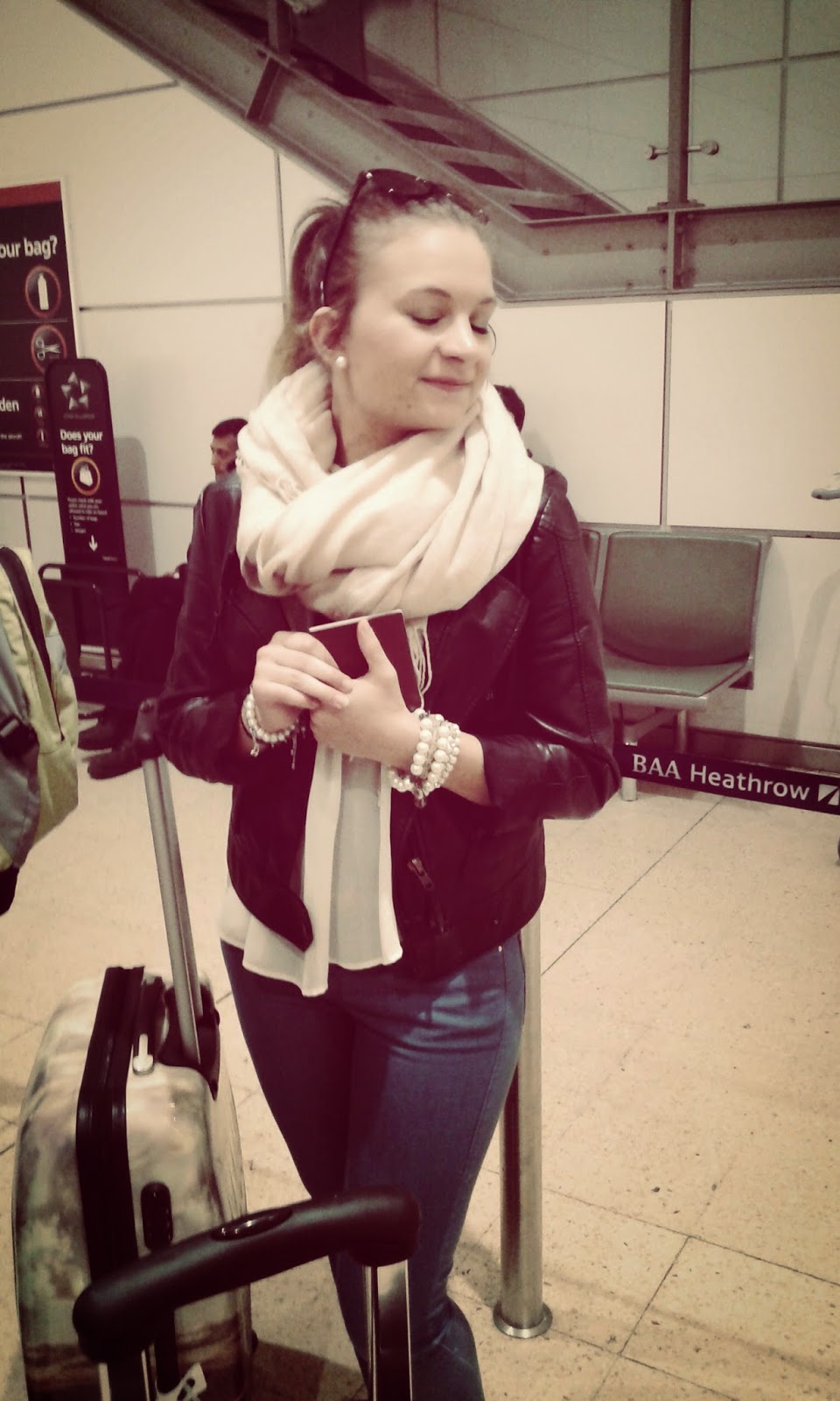 As we had to go home again that day I decided to wear something comfortable for the flight. I had formerly always been wearing a black pair of leggings for flights combined with a cozy and comfy top just because tight jeans are just not advisable for any kind of flight as they are just uncomfortable when you need to sit longer than one hour. Unfortunately my „flight leggings“ had left me after the flight to London with a hole on the back of my shank. Thanks a lot. 😛