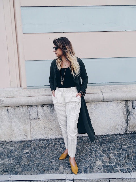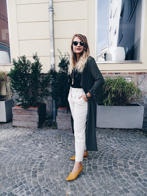 Trousers: Mango; Shoes: Zara; Duster: Primark; Shirt: H&M; Glasses: RayBan