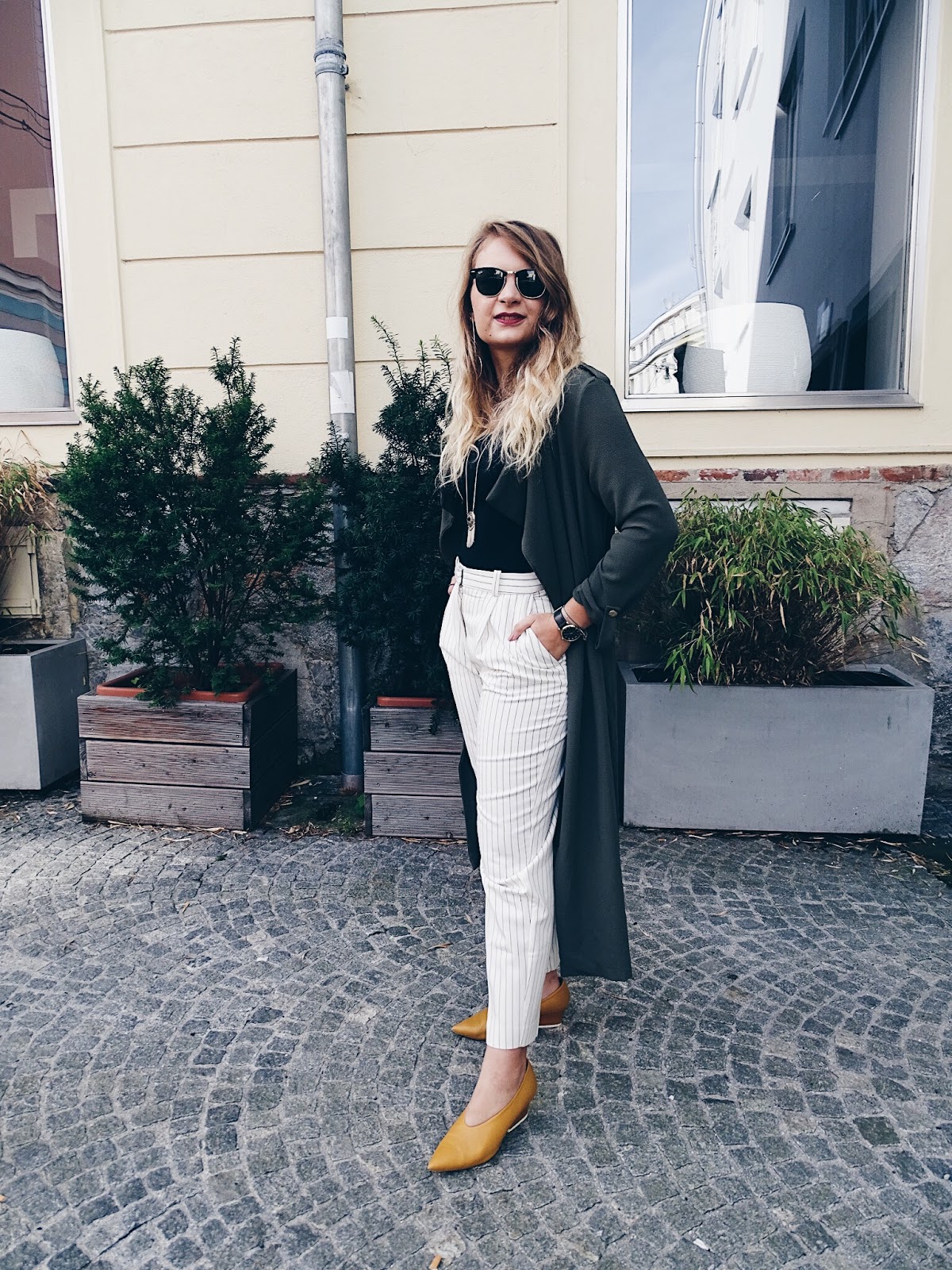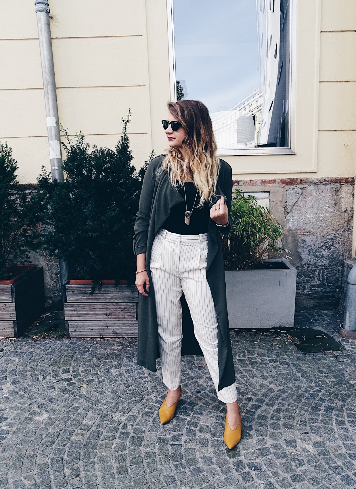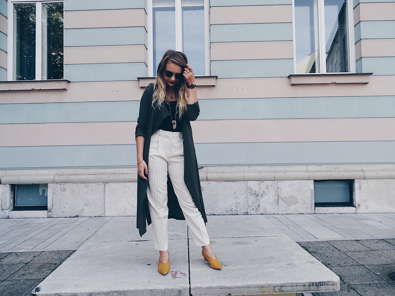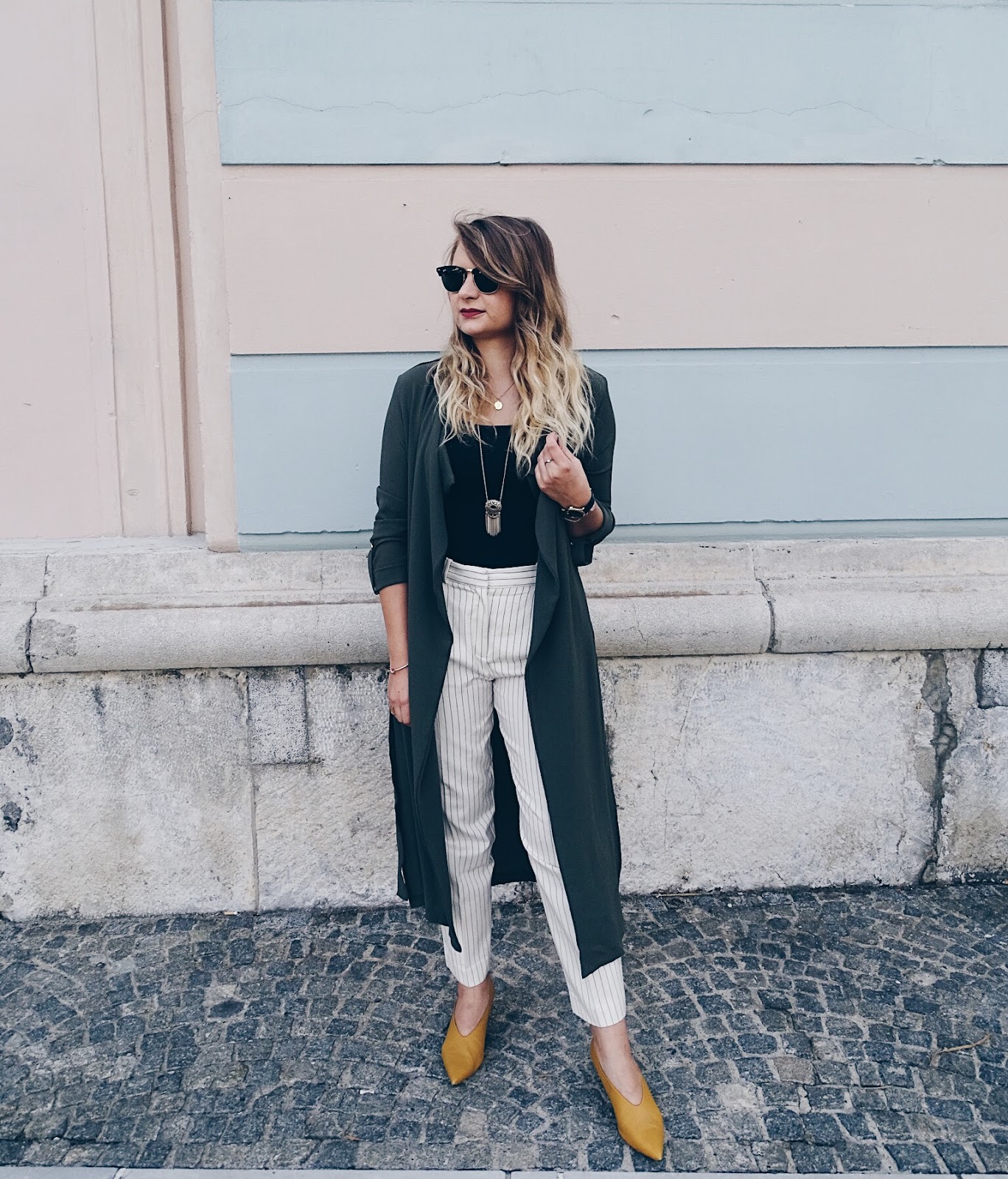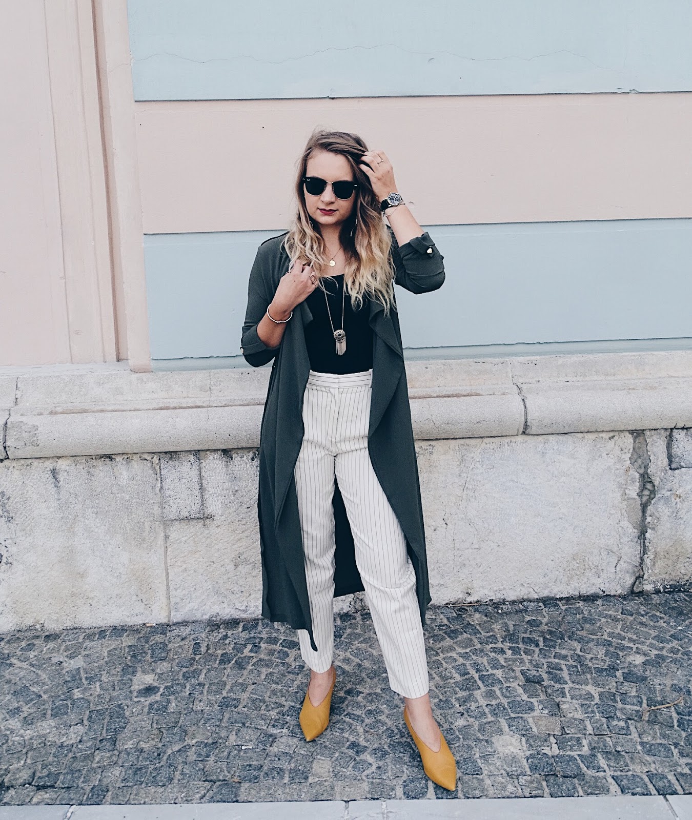 Trousers: Mango; Shoes: Zara; Duster: Primark; Shirt: H&M; Glasses: RayBan