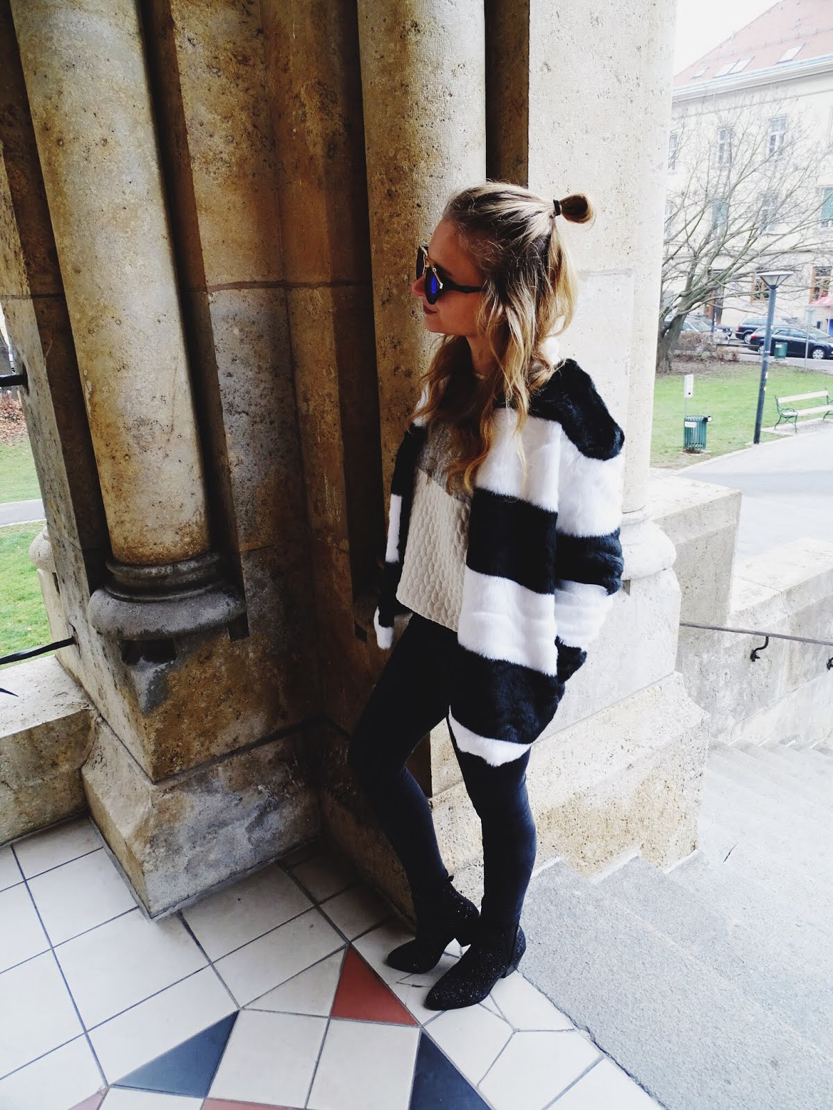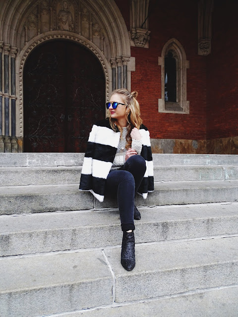 Even though it hasn’t snowed yet, temperature has certainly decreased in a very wintery manner, turning getting dressed in the morning into a challenge as the task is to not get frostbites when stepping outside. However, the fashion world has been very pleasant this fall/winter season, with an uprising revival of furry coats and jackets, which make it so much easier to create that cozy, heart warming feeling we get whenever we’re wrapped up in a comfortable blanket at home while sipping on a cup of tea. Winter may not be my favourite season in terms of weather as I get cold way too easily, it is, however, undoubtedly one of my favourite seasons regarding clothing. The luxury of layering and combining different fabrics with each other, experimenting with extravagant looks and pieces, has always been highly appealing to me. Besides the revival of (faux) fur coats there’s still the all time classic that cannot be missed during winter and Christmas season. The sweater. Sweaters exist in literally every imaginable colour, which makes them so incredibly diverse and easy to combine to every outfit, casual or elegant. Add some extraordinary accessory and there is no way you won’t make some gray, freezing days brighter.