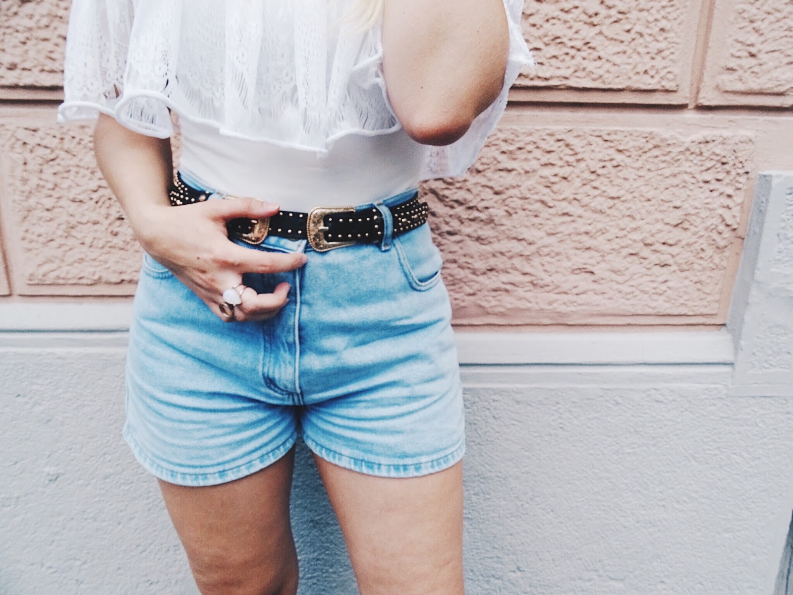 Shorts: Levis (Dogdays Of Summer); Bodysuit: ASOS; Slides: Miss Desiree; Belt: ASOS; Glasses: QUAY Australia
